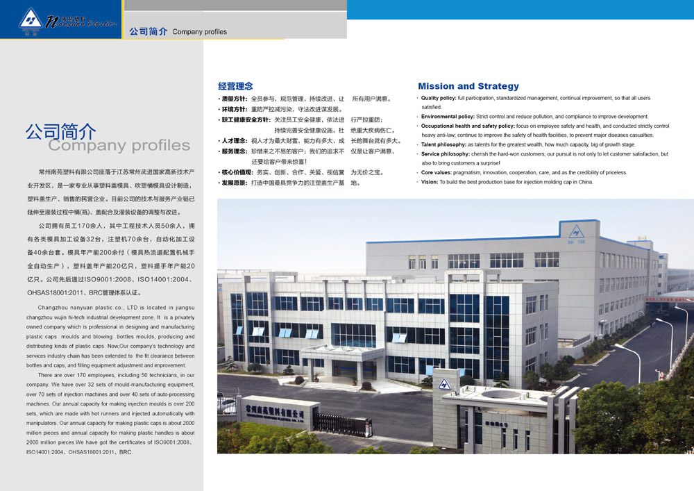 常州南苑塑料有限公司是一家專(zhuān)業(yè)從事塑料蓋模具、吹塑桶模具設(shè)計(jì)制造及塑料蓋產(chǎn)品生產(chǎn)和銷(xiāo)售的民營(yíng)企業(yè)。公司創(chuàng)建于1991年,總投資8000萬(wàn)元,擁有工程技術(shù)人員50余人,品質(zhì)管理人員20余人;各類(lèi)注塑設(shè)備70余臺(tái)套。模具加工設(shè)備40余臺(tái)套,模具年產(chǎn)能200余付,塑料蓋年產(chǎn)能20億只,塑料提手年產(chǎn)能20億只。產(chǎn)品涉及潤(rùn)滑油、食品和保健品行業(yè)。主要客戶(hù)有:中石化、中石油、道達(dá)爾、埃爾夫、景田、怡寶、農(nóng)夫山泉等知名品牌的生產(chǎn)商!