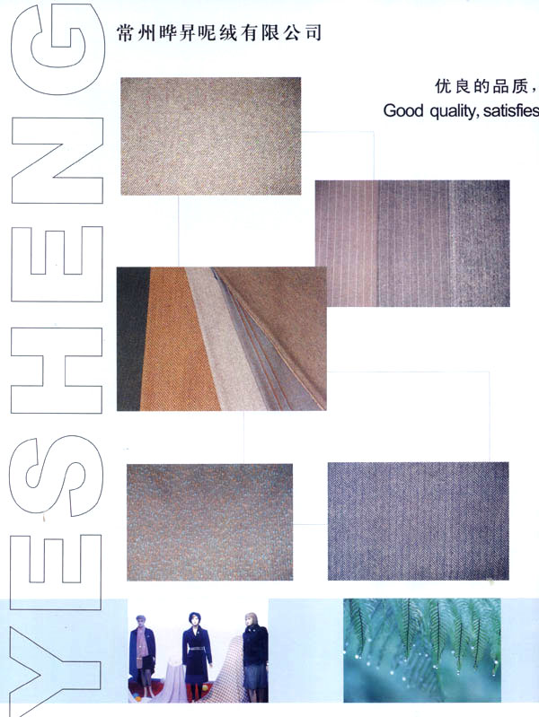 我廠成立于1999年,占地面積占60000平方米。固定資產(chǎn)有6000萬元。年銷售額達到1億元,全廠職工有600余人,技術員工超過80人,我廠主要經(jīng)營以粗毛紡為主的各式面料,以外銷為主,有一條完整的流水生產(chǎn)線,從原料一染色一紡紗一織造一后整理。我廠擁有12個染缸,日產(chǎn)量為6噸,精紡3600錠,粗紡8個臺套,劍桿織機60臺,后整理有全套精粗紡加工設備。主要產(chǎn)品有:羊絨,粗花呢,免羊毛,雙面呢,法蘭絨,精紡花呢,維羅呢,阿爾巴卡等,以及各類格子花呢。近年來本企業(yè)利用地區(qū)優(yōu)勢勢力開發(fā)新品,在原有的基礎上開發(fā)出各種備受親睞的花式呢料。如格子花呢,緞染花呢,粗毛絨呢,提花呢,并于2000年通過ISO9002認證。本廠產(chǎn)品主要銷往歐洲,日本,韓國,法國,加拿大,美國,歡迎廣大客戶前來垂詢合作。本廠有志與世界的品牌建立良好的合作關系。