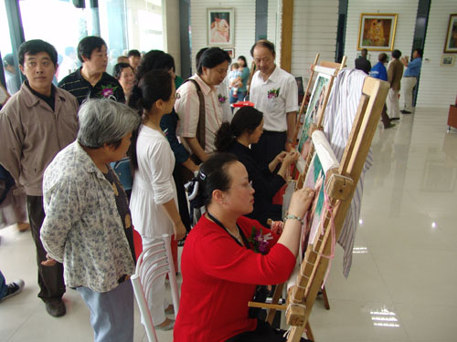 狄靜亂針繡工作室由江蘇省工藝美術大師,江蘇省非物質(zhì)文化遺產(chǎn)傳承人,研究員級高級工藝美術師狄靜創(chuàng)立于1999年,現(xiàn)已初具規(guī)模,每年能手工繡制作品上百幅,是國家、省、市政府對外交流禮品的指定繡制單位,當之無愧地成為宣傳常州特色手工藝品的主陣地,常州最具影響力的對外藝術交流名片。 2004年,狄靜亂針繡工作室受常州市文廣新局、常州劉海粟美術館的邀請,在劉海粟美術館內(nèi)開設常州亂針繡館。作為狄靜亂針繡工作室常年的對外展示窗口,現(xiàn)在常州亂針繡館每天接待參觀人數(shù)達百余人次。2008年6月,常州狄靜亂針繡工作室受市文廣新局和新北區(qū)政府的邀請,加盟坐落薛家鎮(zhèn)“華夏工藝美術產(chǎn)業(yè)博覽園”,至今年接待參觀人達數(shù)萬人。 狄靜亂針繡工作室的作品以繡工精到、形象逼真、色彩豐富、立體感強等特點被眾多收藏家收藏,遠銷世界各國。該工作室的作品多次被中國政府作為國禮贈送給斯里蘭卡總統(tǒng)、阿曼國王和王子、美國LU公司總裁副總裁全家、美國總統(tǒng)顧問團顧問張緒通教授等。常州市政府也在本工作室訂制亂針繡肖像贈送給香港政務司司長唐英年、日本議員、和為常州建設發(fā)展作出貢獻的各國友人。工作室的人像繡藝術作品尤為被世界各地藝術品收藏家關注,紛紛前來定繡,著名的香港實業(yè)家李兆基先生先后兩次到狄靜亂針繡工作室,定繡了自己的大幅肖像。臺灣名人焦定標先生、香港著名實業(yè)家查濟民先生、美國通用公司總裁等都到狄靜亂針繡定繡自己和家人的肖像。 狄靜亂針繡工作室在弘揚傳統(tǒng)文化,培育優(yōu)秀傳承人才的道路上始終堅持不懈。2004年起,在常州文化館內(nèi)開設免費亂針繡培訓班,到目前已有1000多名學員學習了亂針繡藝術。2009年,應重慶市大渡口區(qū)政府的邀請,狄靜將亂針繡培訓班開到重慶,為重慶市的學生和部分下崗女工傳授亂針繡技藝。狄靜亂針繡工作室內(nèi),還有不遠萬里從德國、泰國、韓國、捷克斯洛伐克等國慕名來求學的外籍學生,她們現(xiàn)在都已有作品問世。其中泰國學生陳玉鸞女士,懷著對國王無限崇敬的心情,在狄靜老師悉心指導下繡出了一幅泰國普密蓬國王的繡像。2008年1月,狄靜受到泰國國王的邀請,與陳玉鸞女士一起走進泰國王宮親手將作品敬獻普密蓬國王,普密蓬國王對形神兼?zhèn),絲光閃爍的藝術珍品十分稱頌和贊賞。 多年來,狄靜亂針繡工作室直面挑戰(zhàn),不斷壯大發(fā)展亂針繡工作室的規(guī)!,F(xiàn)工作室擁有一支以狄靜為首的、技藝精湛的、刺繡精英為主體的繡娘團隊,是一個高水平、高素質(zhì)的亂針繡藝術群體,集亂針繡精品繡制、展示和技藝研究為一體,以打造精品的理念創(chuàng)作多題材、多層次的亂針繡藝術精品。