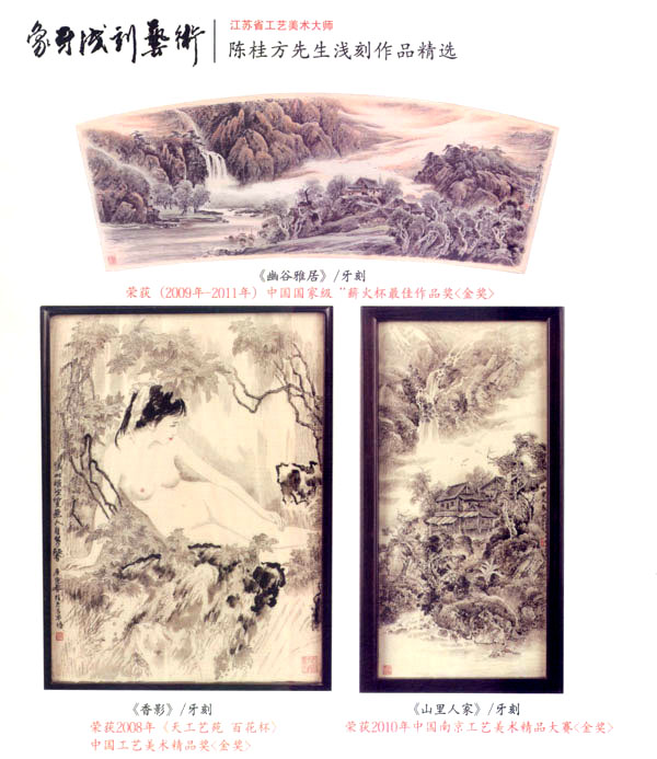 陳桂方,江蘇常州武進(jìn)人,中國(guó)著名雕刻藝術(shù)家,江蘇省工藝美術(shù)大師、研究員級(jí)、高級(jí)工藝美術(shù)師,江蘇省非物質(zhì)文化遺產(chǎn)《象牙淺刻》代表性傳承人。畢業(yè)于中國(guó)書(shū)畫(huà)函授大學(xué),深造于清華大學(xué)、南大美術(shù)系,現(xiàn)任中國(guó)工藝美術(shù)協(xié)會(huì)會(huì)員,江蘇省工藝美術(shù)學(xué)會(huì)理事,常州市工藝美術(shù)家協(xié)會(huì)副秘書(shū)長(zhǎng),常州市工藝美術(shù)行業(yè)協(xié)會(huì)常務(wù)理事,武進(jìn)工藝美術(shù)協(xié)會(huì)副主席。陳桂方大師淺刻作品的藝術(shù)特點(diǎn):山水氣韻生動(dòng),氣勢(shì)磅礴,場(chǎng)面壯觀,刀法細(xì)膩:人物仕女生動(dòng)可人,栩栩如生,充分表達(dá)體現(xiàn)了中國(guó)象牙工藝獨(dú)具的內(nèi)在文化底蘊(yùn)和現(xiàn)代社會(huì)的審美觀念及獨(dú)特的淺刻藝術(shù)表現(xiàn)技藝。對(duì)每件藝術(shù)作品創(chuàng)作都精益求精,強(qiáng)調(diào)藝術(shù)創(chuàng)作的思想性、意境及內(nèi)涵。注重章法構(gòu)思,掌握牙刻藝術(shù)的特性表現(xiàn),作品具有鮮明生動(dòng)的時(shí)代氣息,獨(dú)具所創(chuàng)工筆與寫(xiě)意相結(jié)合的牙刻藝術(shù)表現(xiàn)手法和表現(xiàn)形式,出眾、飄逸、多變的刀法技藝,粗獷處見(jiàn)細(xì)微、方寸間見(jiàn)大觀的創(chuàng)作理念深受專家權(quán)威的肯定和業(yè)內(nèi)人士的一致好評(píng)。陳桂方大師至企頑事象牙淺刻藝術(shù)創(chuàng)作近四十余載,完善了自己的創(chuàng)作體系,成就了自己獨(dú)特的藝術(shù)風(fēng)格。作品數(shù)年來(lái)連續(xù)二十多次榮獲國(guó)家最高藝術(shù)精品大獎(jiǎng)《金獎(jiǎng)》,象牙淺刻作品《李逵探母》已被國(guó)家工藝美術(shù)館收藏,并頒發(fā)了國(guó)家收藏證書(shū),在全國(guó)數(shù)十年間尚屬首次。當(dāng)前,陳桂方牙刻藝術(shù)作品已深受廣大海內(nèi)外業(yè)內(nèi)人士、收藏家們的鐘愛(ài)、青睞、熱藏,并被譽(yù)為當(dāng)代最杰出最具潛質(zhì)的實(shí)力派藝術(shù)大師。