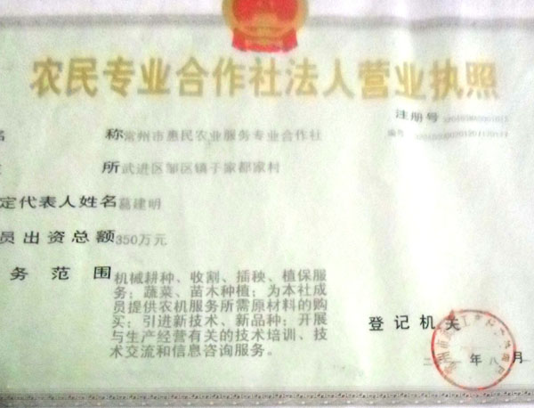 常州市惠民農(nóng)業(yè)服務(wù)專業(yè)合作社主要從事機械耕種、收割、插秧、植保服務(wù);蔬菜、苗木種植;為本社成員提供農(nóng)機服務(wù)所需原材料的購買;引進新技術(shù)、新品種;開展與生產(chǎn)經(jīng)營有關(guān)的技術(shù)培訓、技術(shù)交流和信息咨詢服務(wù)。