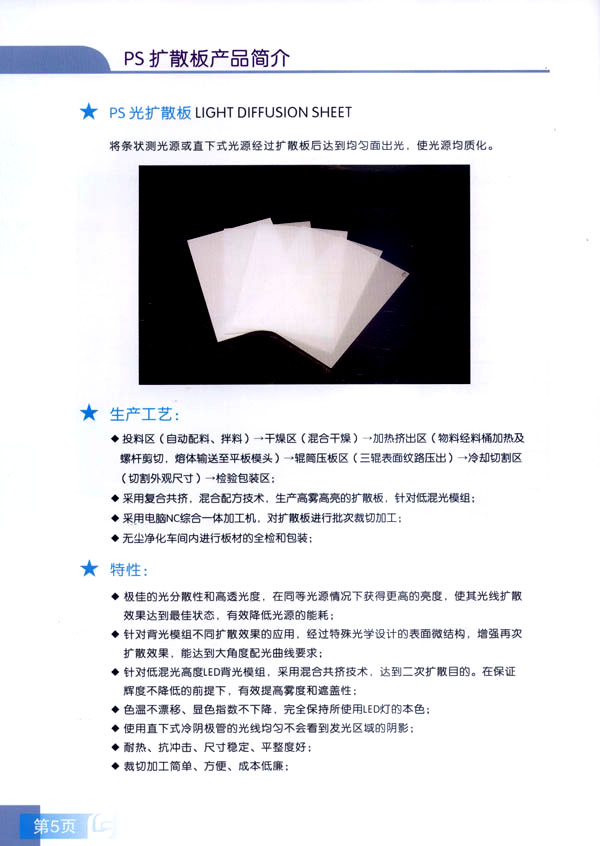 常州市聯(lián)豐(鏡面輥)集團(tuán)成立于2000年,是國(guó)內(nèi)從事板片材行業(yè)輥筒制造的專業(yè)企業(yè)。聯(lián)豐集團(tuán)全資子公司常州市聯(lián)豐光電科技有限公司成立于2013年6月。聯(lián)豐光電專業(yè)從事光學(xué)級(jí)擴(kuò)散板的研發(fā),生產(chǎn)和銷售。擁有各類高級(jí)技術(shù)研發(fā)人員10人,生產(chǎn)、管理及銷售人員60人。公司廠房占地面積2萬(wàn)平方米,工廠擁有十萬(wàn)級(jí)凈化車間,能有效滿足光學(xué)領(lǐng)域擴(kuò)散板生產(chǎn)的環(huán)境要求。公司已經(jīng)申報(bào)江蘇省高新技術(shù)企業(yè)。 公司現(xiàn)擁有全新進(jìn)口PS專用擴(kuò)散板材生產(chǎn)線兩條,月生產(chǎn)能力650噸PS擴(kuò)散板。日本進(jìn)口協(xié)榮裁切一體機(jī)兩臺(tái),月加工能力50萬(wàn)片(32寸擴(kuò)散板)。 聯(lián)豐生產(chǎn)的VFP系列PS擴(kuò)散板能廣泛應(yīng)用于直下式LED,CCFL液晶電視背光模組。產(chǎn)品在很多國(guó)內(nèi)一線TV的背光模組上使用。產(chǎn)品具有高輝度,高擴(kuò)散性,特別適用于超薄背光模組的擴(kuò)散部件,能有效降低成本,節(jié)約能源。 由于LED照明行業(yè)的興起,公司特別針對(duì)于LED面板燈和筒燈開發(fā)的LFP系列擴(kuò)散板,在滿足透光率條件下,能最大限度提高光通量,從而增加燈具的光效,受到廣大客戶的好評(píng)。