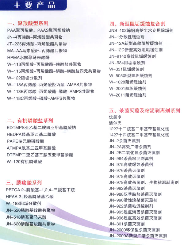 南京化工學(xué)院常州市武進(jìn)水質(zhì)穩(wěn)定劑廠是集科研、生產(chǎn)、經(jīng)貿(mào)、服務(wù)、教育于一體的聯(lián)合實(shí)體,創(chuàng)辦于1986年。 企業(yè)位于長(zhǎng)江金三角,緊靠滬寧鐵路和京杭大運(yùn)河畔,處于滬寧高速公路之間道口橫山橋鎮(zhèn),距民航常州機(jī)場(chǎng)僅半小時(shí)路程,交通便捷。企業(yè)占地面積15.7萬(wàn)平方米,擁有固定資產(chǎn)5000余萬(wàn)元,員工400余名,其中專業(yè)技術(shù)人員占員工總數(shù)的28%。專業(yè)生產(chǎn)“頌歌”牌系列水質(zhì)穩(wěn)定劑,綜合年產(chǎn)能力3萬(wàn)噸。 企業(yè)從1995年起先、后被列為國(guó)家中型二檔企業(yè),江蘇省明星企業(yè),江蘇省高新技術(shù)企業(yè),江蘇省環(huán)保產(chǎn)業(yè)百?gòu)?qiáng)企業(yè),化工部化工建設(shè)工程標(biāo)準(zhǔn)產(chǎn)品定點(diǎn)生產(chǎn)企業(yè),國(guó)家“精細(xì)化工星火技術(shù)密集區(qū)”重點(diǎn)骨干企業(yè),國(guó)家“貿(mào)工農(nóng)”出口商品生產(chǎn)基地。2003年起被評(píng)為國(guó)家環(huán)保產(chǎn)業(yè)骨干企業(yè)。2004年起“頌歌”商標(biāo)被評(píng)為江蘇省著名商標(biāo),“頌歌”牌水質(zhì)穩(wěn)定劑被評(píng)為江蘇省名牌產(chǎn)品。 企業(yè)運(yùn)用嚴(yán)密的科學(xué)管理,配有先進(jìn)的工藝技術(shù)和精良的生產(chǎn)裝備,保持高標(biāo)準(zhǔn)的產(chǎn)品質(zhì)量。所生產(chǎn)的水質(zhì)穩(wěn)定劑達(dá)到或超過(guò)國(guó)際先進(jìn)水平,擁有PBTCA等多個(gè)江蘇省高新技術(shù)產(chǎn)品,DPSC緩蝕阻垢劑被列為國(guó)家星火計(jì)劃項(xiàng)目,工業(yè)循環(huán)水用新型緩蝕阻垢殺菌劑被國(guó)務(wù)院評(píng)為國(guó)家科技進(jìn)步二等獎(jiǎng)。主要產(chǎn)品均通過(guò)部、省級(jí)科技成果鑒定,連續(xù)十多年被中國(guó)石化總公司評(píng)定為合格推薦產(chǎn)品。企業(yè)已通過(guò)IS09001、IS014001國(guó)際質(zhì)量、環(huán)境認(rèn)證,為國(guó)內(nèi)外石化行業(yè)、冶金、鋼鐵、化肥、電力、紡織等領(lǐng)域的工業(yè)循環(huán)冷卻水的水質(zhì)處理提供了必不可少的配套產(chǎn)品。 企業(yè)對(duì)外開(kāi)放,實(shí)行全方位合作。自九六年企業(yè)獲得自營(yíng)進(jìn)出口經(jīng)營(yíng)權(quán),水質(zhì)穩(wěn)定劑產(chǎn)品已銷往美國(guó)、英國(guó)、澳大利亞、日本和東南亞國(guó)家及香港、臺(tái)灣等地區(qū),并與之建立了穩(wěn)定的經(jīng)貿(mào)合作關(guān)系。